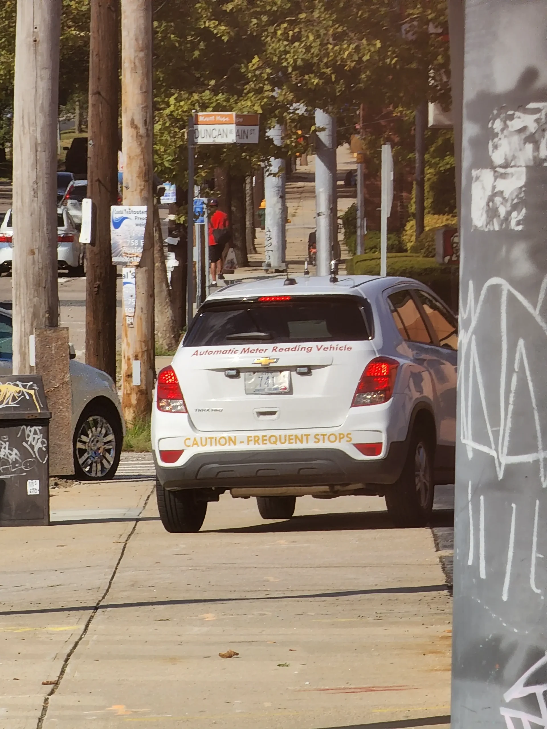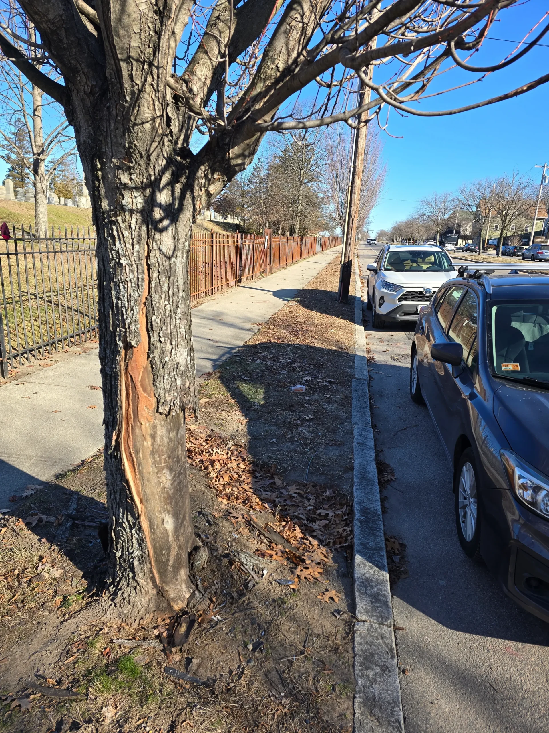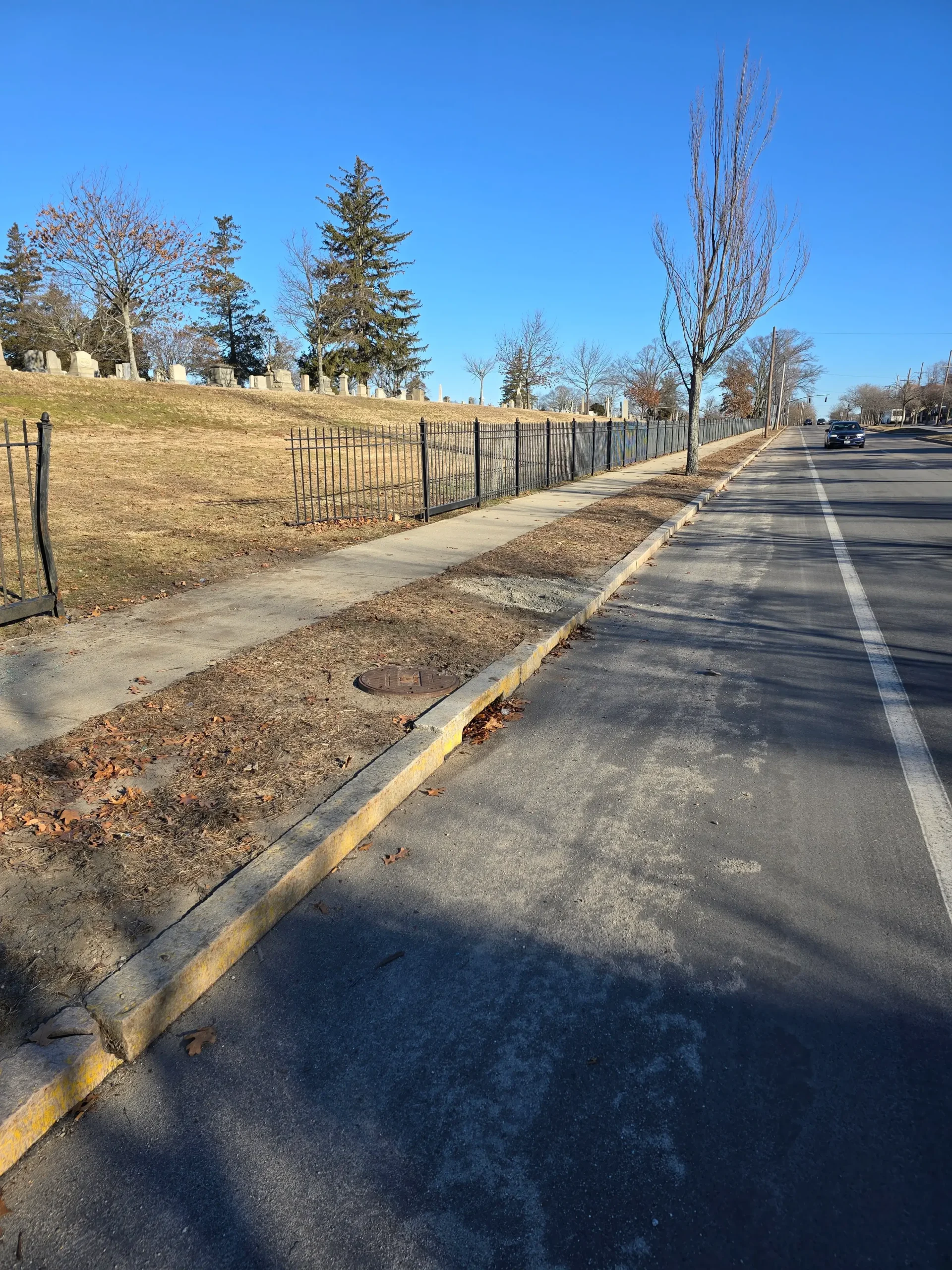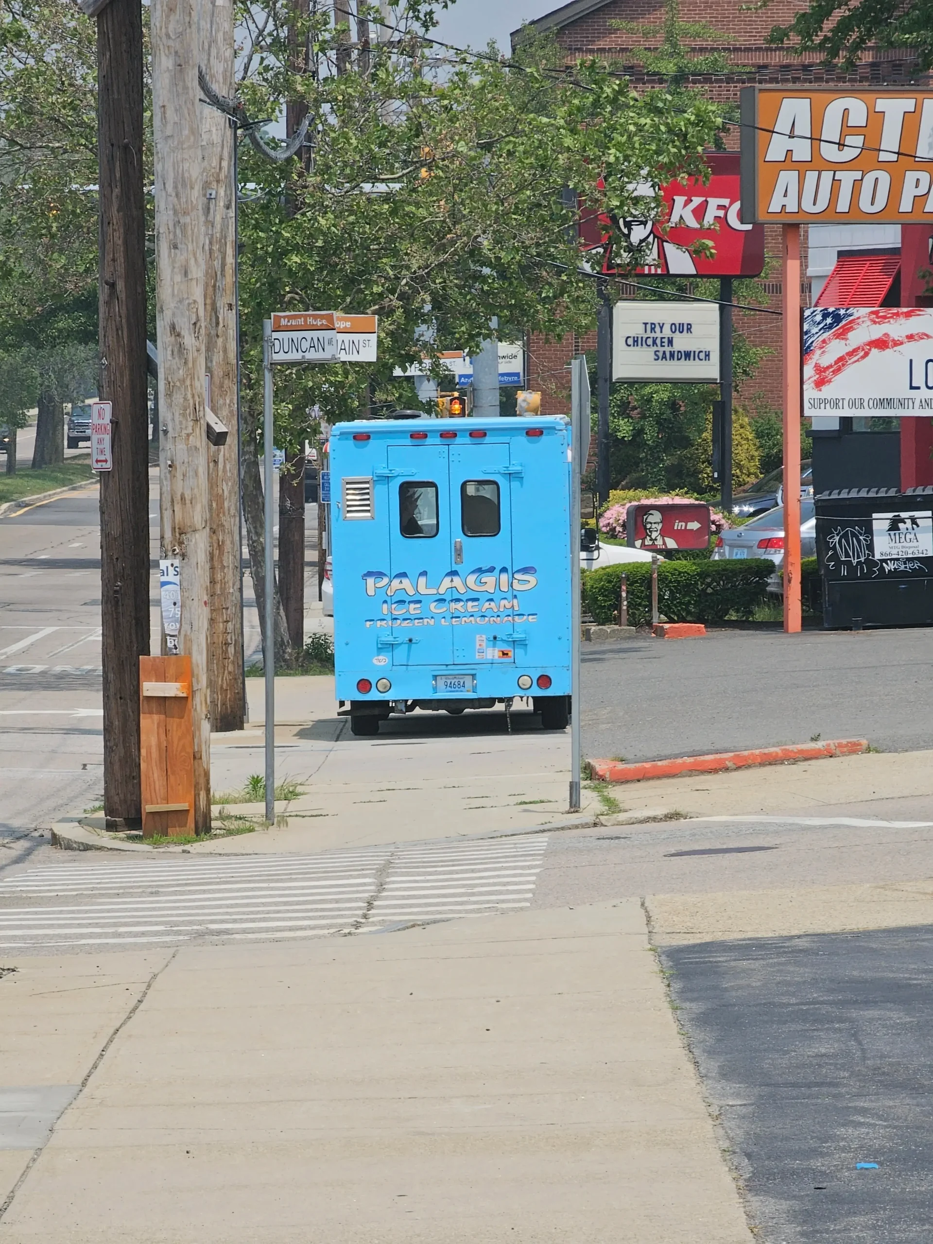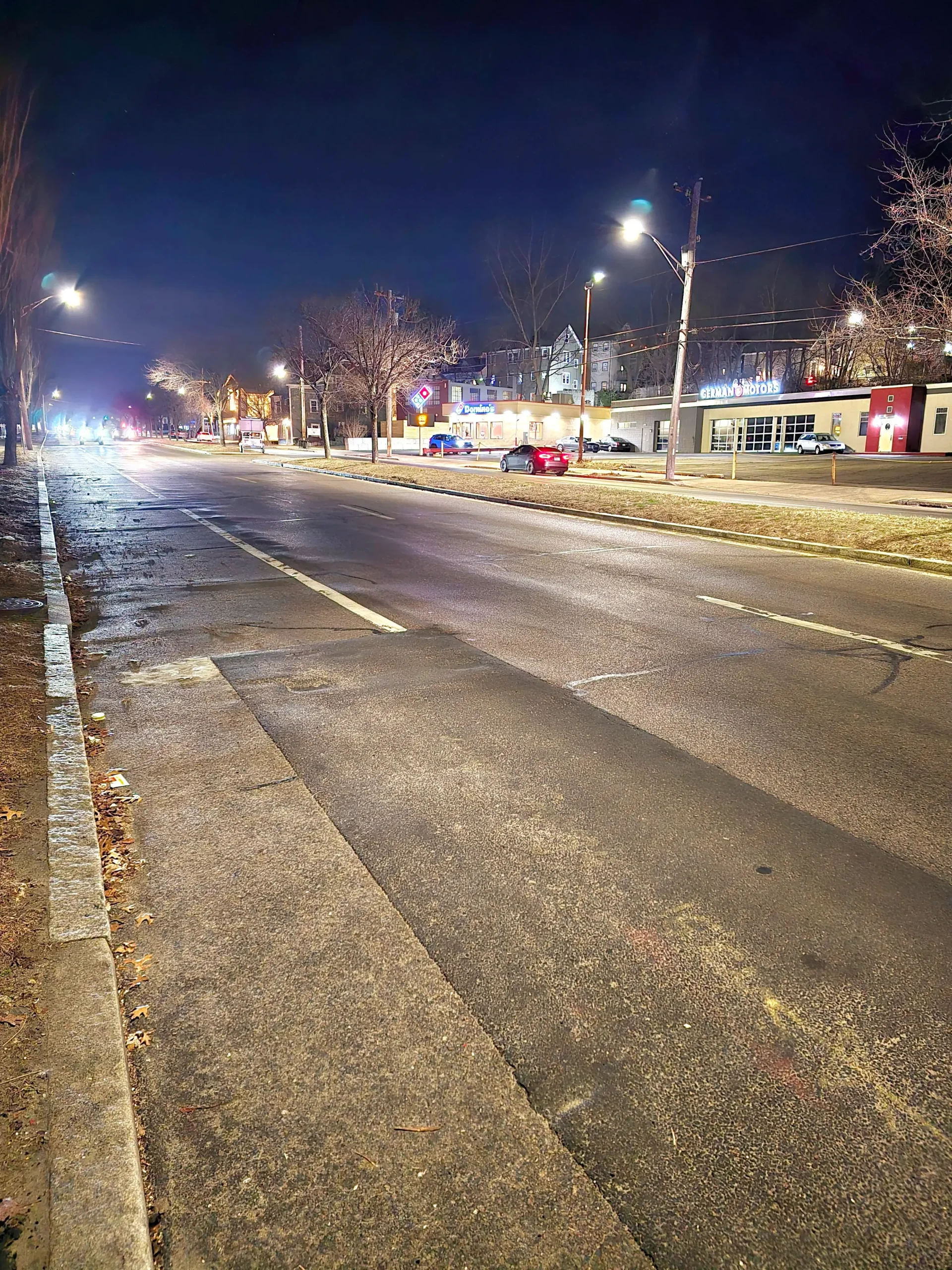 Cars idle in crosswalks and park on sidewalks.Long stretches of no crosswalks have led to desire paths and the need to jaywalk. Additionally, despite large amounts of unused space on the side of the road, there are no bicycle lanes.