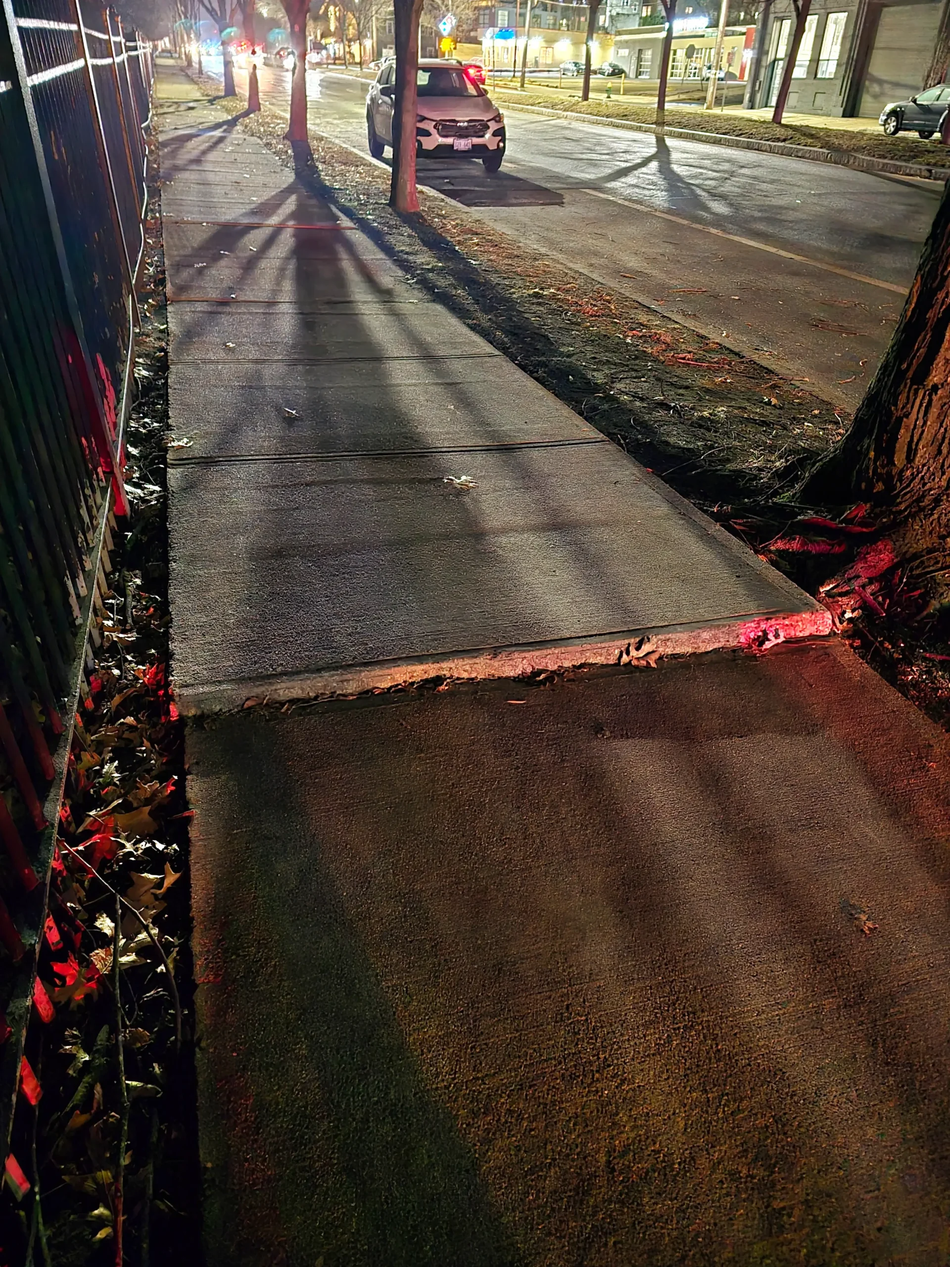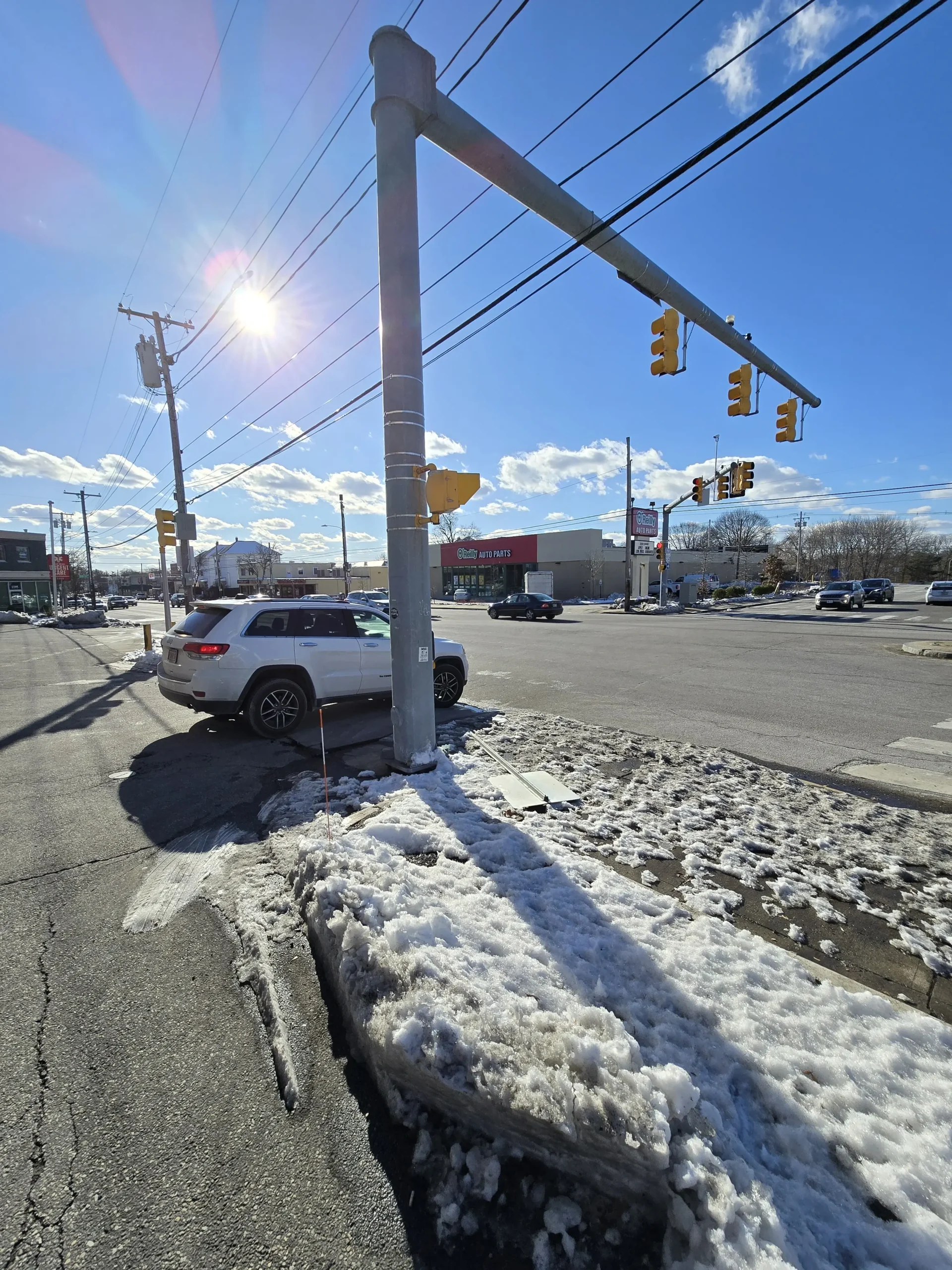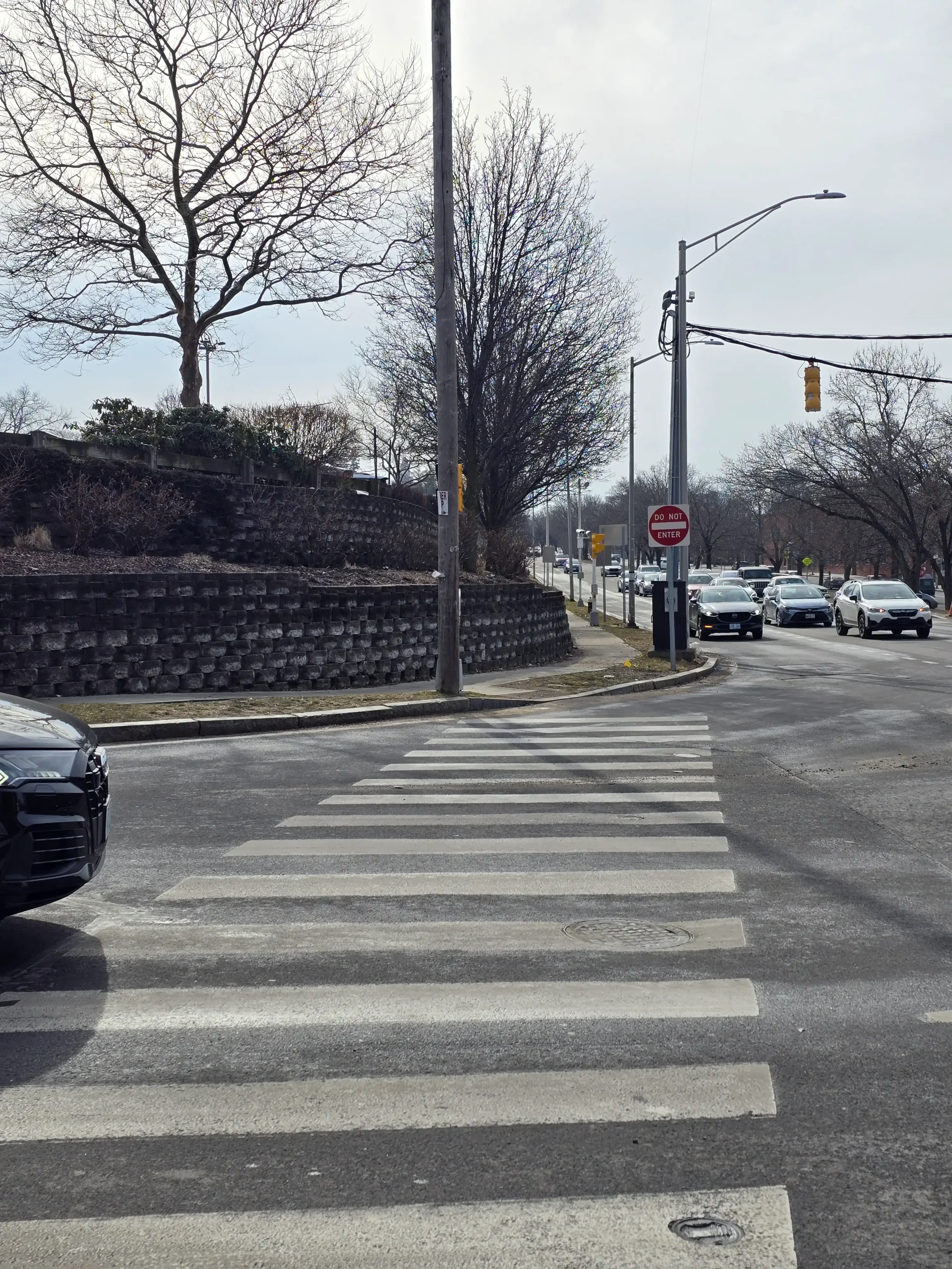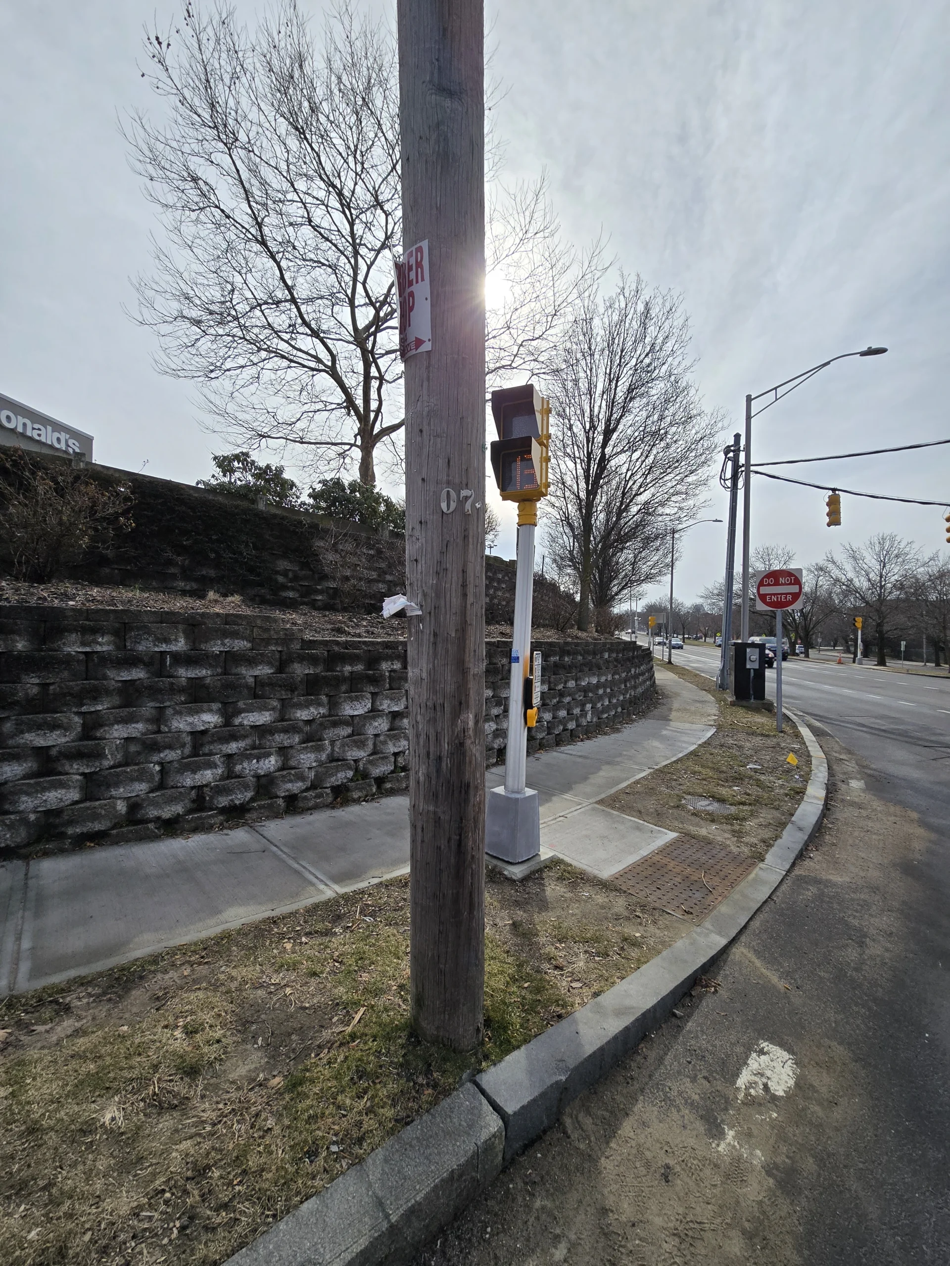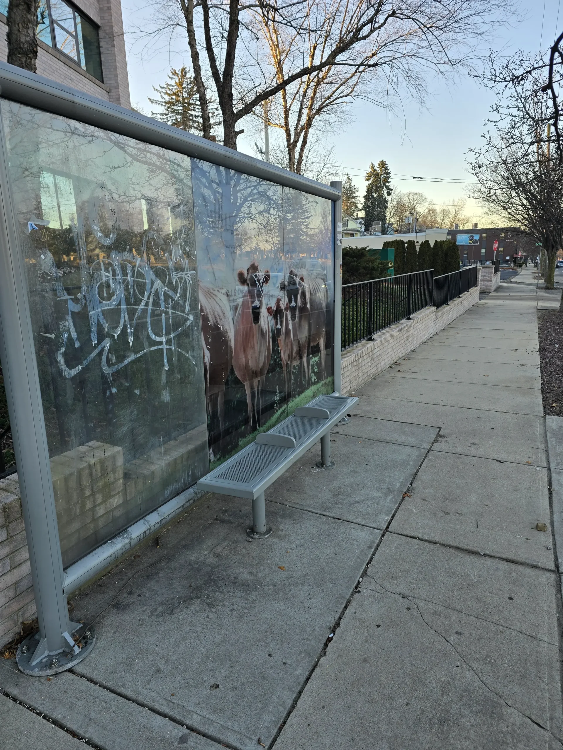 Accidents are very common, and since motorists drive quickly, they often careen into and beyond the sidewalk. Debris, such as glass and vehicle parts, are never cleared, and damage to infrastructure is seldom fixed.A newly completed pedestrian crossing signal is entirely obstructed as it was placed directly behind a utility pole.Bus stops do not have adequate shelter and are heavily damaged. Notably, the ones pictured are the nicer ones, as most do not even have a place to sit.Years-long stagnant construction materials eat away at sidewalk space, while uneven sidewalks are strewn about.In the winter months, many parts remain permanently unshoveled, often getting icy.